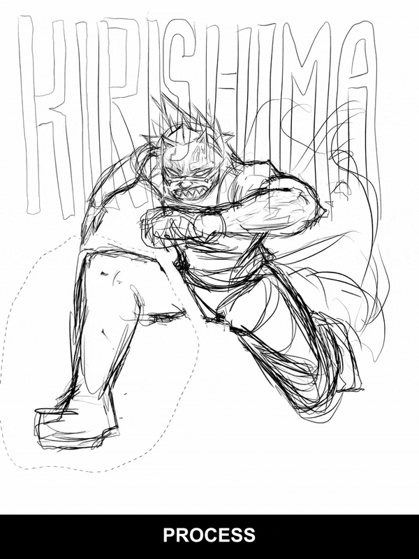 The concept behind this animation was to portray the Kirishima using the illustration style of manga and animation styles typically used to highlight sports athletes - featuring large impacting text and aligning typography. While Scleroderma is not to be glamorized, the character holds to personality traits intended for those who undergo difficult times: endurance, perseverance, and facing your fears.